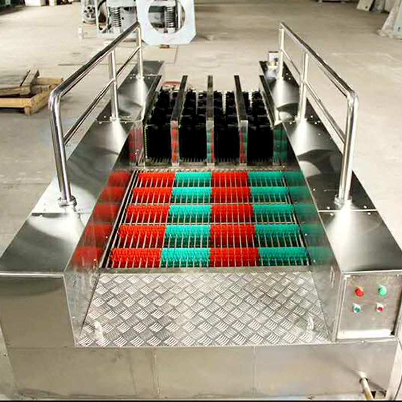 3.主结构架采用工业桁架设计,强度高、清洗机外壳与内件全部采用不锈钢制造,经久耐用。 通道式清洗工作平台,实现了人员无需停留,清洗刷选用进口耐磨尼龙丝材料制成。